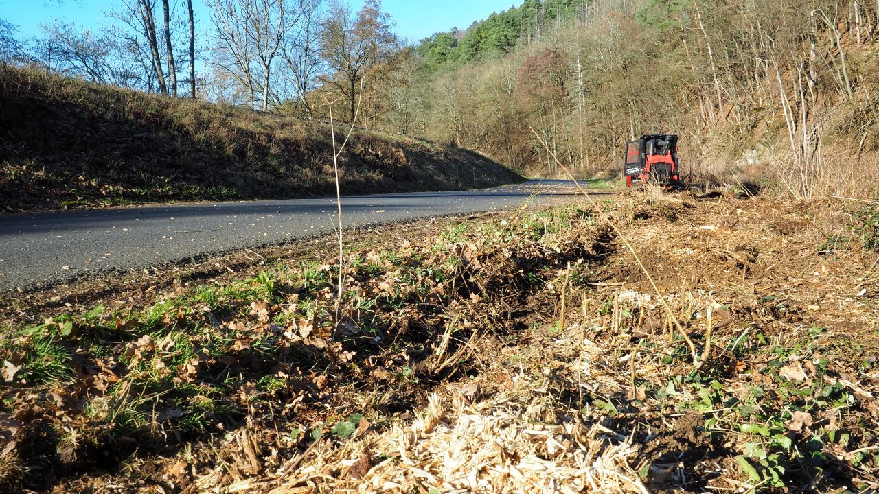 Um die Pflege der Seitenstreifen des ehemaligen Gemeindewalds „Unter der Wallekart“ zwischen Bettgenhausen und Berzhausen zu ermöglichen, hat die Firma Lang aus Hamm am 2. März 2026 mithilfe einer Forstmulchraupe die Baumstümpfe entlang der Straße entfernt. Die Auftragsvergabe erfolgte kurzfristig durch die Ortsgemeinde.