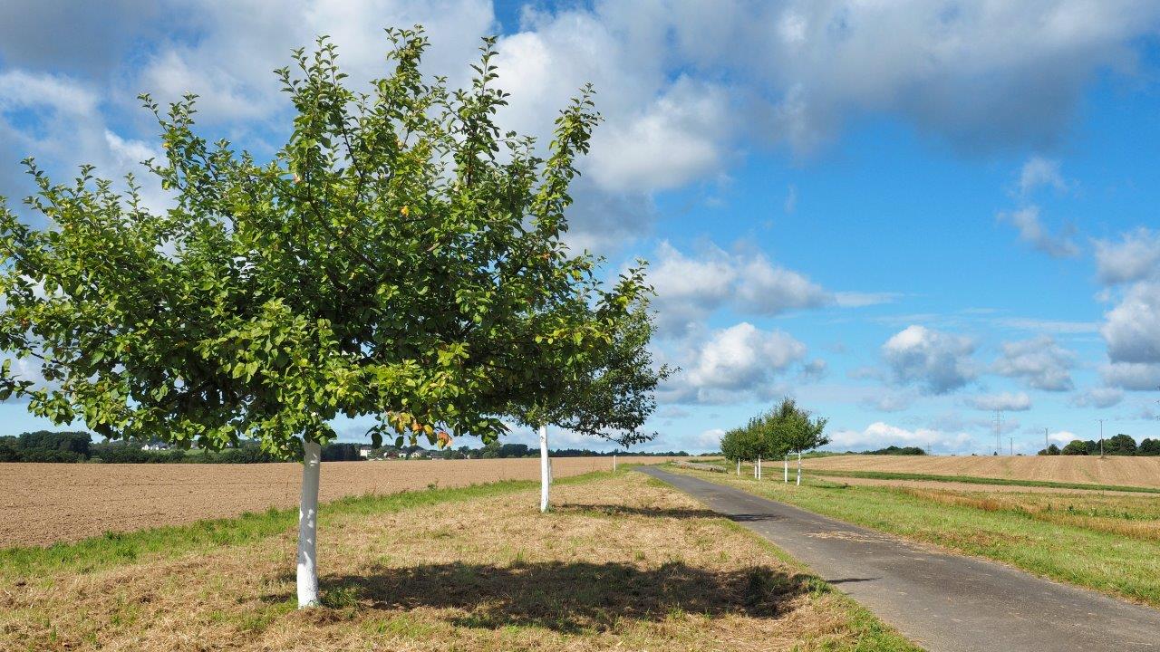 Der Weg auf dem Steinhardsfeld wird von gut gepflegten Apfel- und Birnbäumen gesäumt. | Fotos: Yvette Schäck